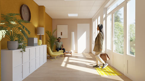La cuisine collective et la salle d’équipe ont été entièrement repensées pour offrir un cadre chaleureux, lumineux et fonctionnel. Ces espaces favorisent les moments de convivialité, qu’ils soient professionnels ou informels. Couleurs chaleureuses, mobilier confortable, et lumière naturelle abondante créent une atmosphère apaisante, propice au bien-être des équipes.